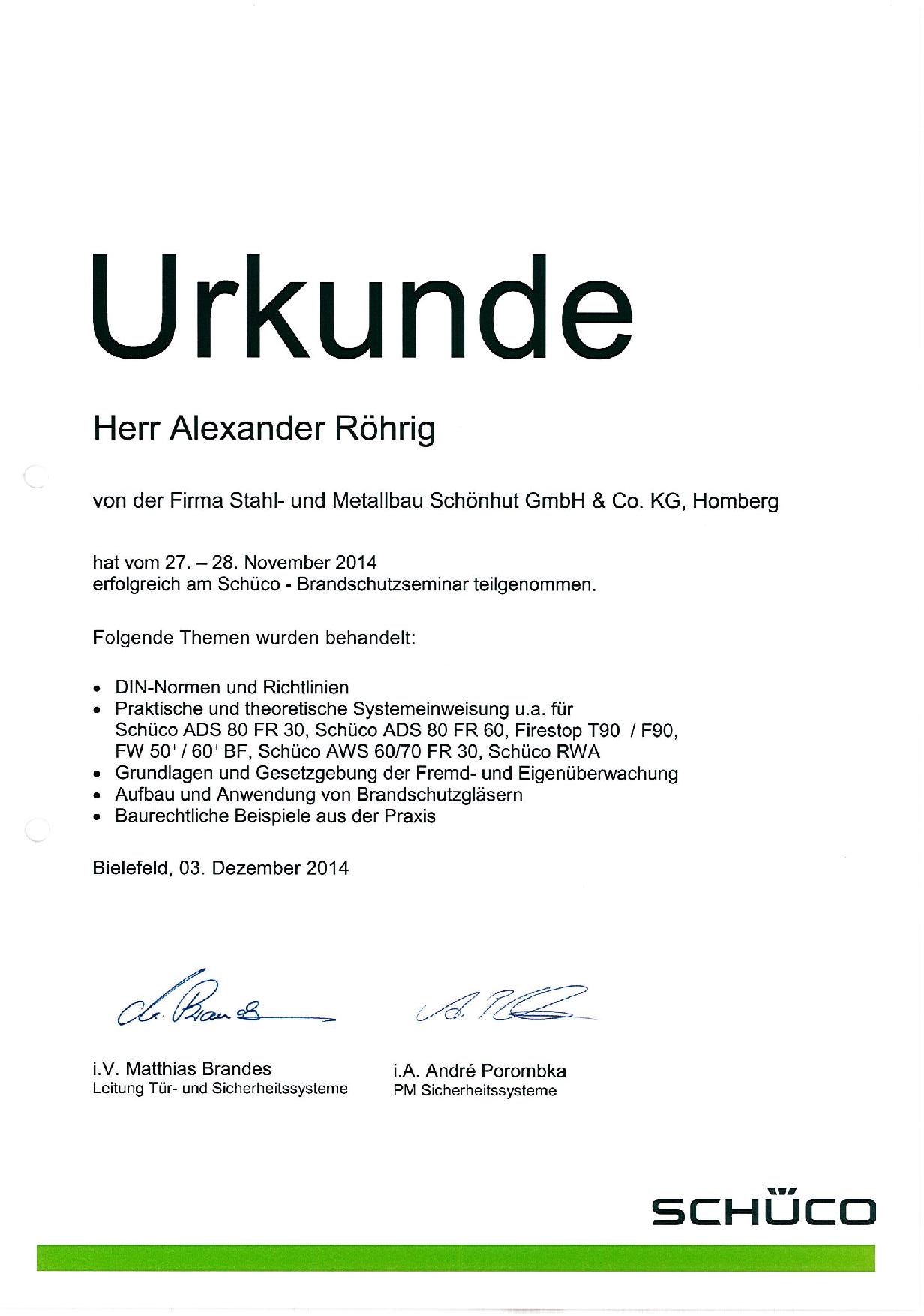 Zertifikate von Metallbau Röhrig
